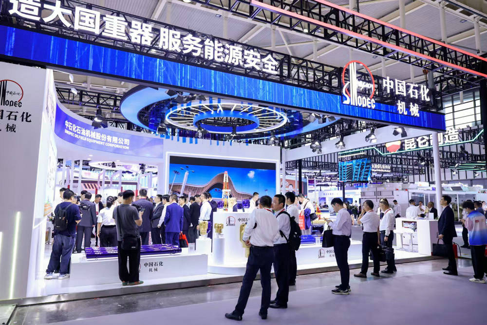 布局八大展区,亮相国产成果。展会设置重器装备、加能、新能源、新材料、智能及自动化、流体控制、综合服务、智慧物流等八大核心展区,覆盖石油石化工业全产业链,集中亮相一批国产化重大技术装备。中国石化展出首套自主研发的Idrilling(应龙)科学钻井系统、最新一代连续满载数智化全电动压裂装备、“经纬领航”旋转导向钻井系统等明星产品;中国石油展出自主研发的F-2800QHL超深井大功率五缸钻井泵组;中国海油带来全球首座移动式注热平台“注热一号”;沈鼓集团180万吨乙烯压缩机组突破50余项关键技术,彰显我国装备制造业整体实力提升。