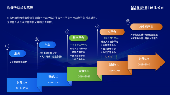财能科技战略成长路径沿“服务→产品→数字平台→AI平台→AI生态平台”持续进阶,为财务人及企业财务提供全链路价值支撑。当前,财能科技聚焦数字平台建设,整合行业优质案例、前瞻洞见与专家智慧;接下来,将重点构建“AI中心”,携手行业资深专家共同探索企业财务数智化转型升级路径,打造财能AI智能共生体,助力财会人员与行业破解实际难题。