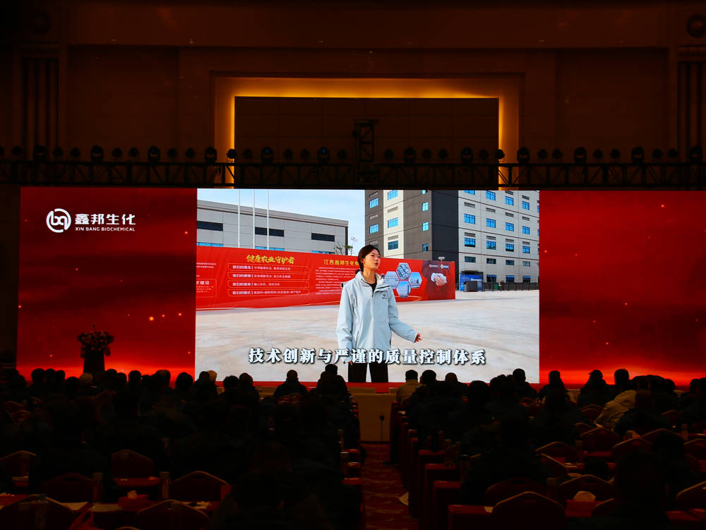 昨天:李志江回顾了鑫邦公司的成长历程,六年以来经历了三个转变,第一次为化工原料、中间体阶段,公司打下基础,稳步起跑,第二次以价取胜的制剂阶段,公司在证件、研发上投入了巨大的资金和精力,目前已取得14个芸苔素系列登记证,在审批的芸苔素系列、调环酸钙系列的证件还有12个;第三次是心怀农业的发展阶段,公司以“引领健康农业,畅享美丽生活”为愿景,以“抗逆提质,单产提升”为定位,以“早优”为靶标,投入人力、物力进行作物方案的试验示范,并成功的在水稻、小麦、玉米、大豆、花生、甘蔗、棉花等作物上形成了系统的抗逆提质,单产提升方案。同时,公司引入自媒体,以“空宣一体”为宗旨,开展分销会、推广会、农民会等一系列推广活动。有效的将公司好的方案通过抖音、快手、视频号等平台传播给广大农民朋友。2025年,公司累计发布视频数量1548条,曝光量超过4500万频次。公司共开展示范试验3461次,农民会445场。