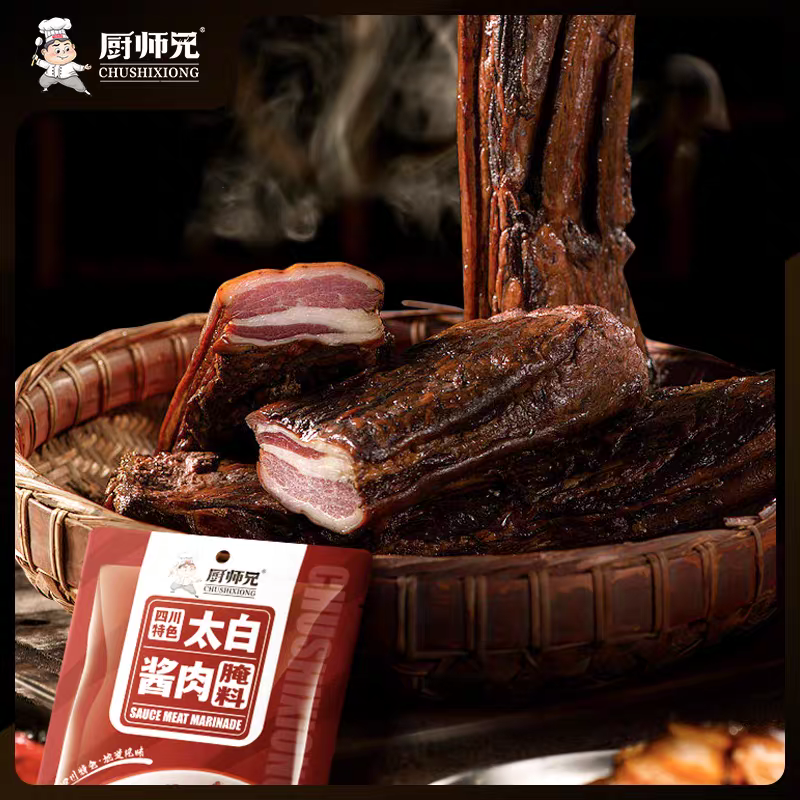 例如,厨师兄太白酱肉腌料设计了精准的使用比例——300g一袋,一袋可腌制6斤肉类,为家庭用户提供了明确的配比指导。